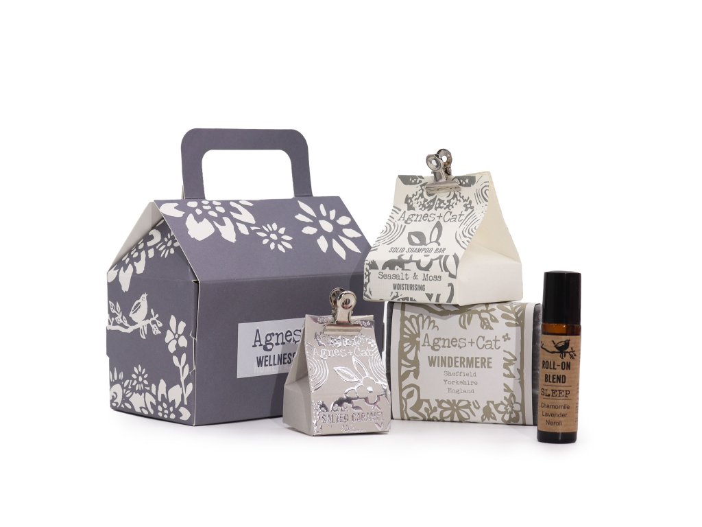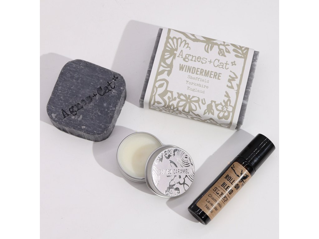 Darčeková Sada (set) - Morský Vánok obsahuje starostlivo vybrané produkty s morskými a slanými akcentmi — mydlo, tuhý šampón, balzam na pery, roll-on so zmesou esenciálnych olejov.