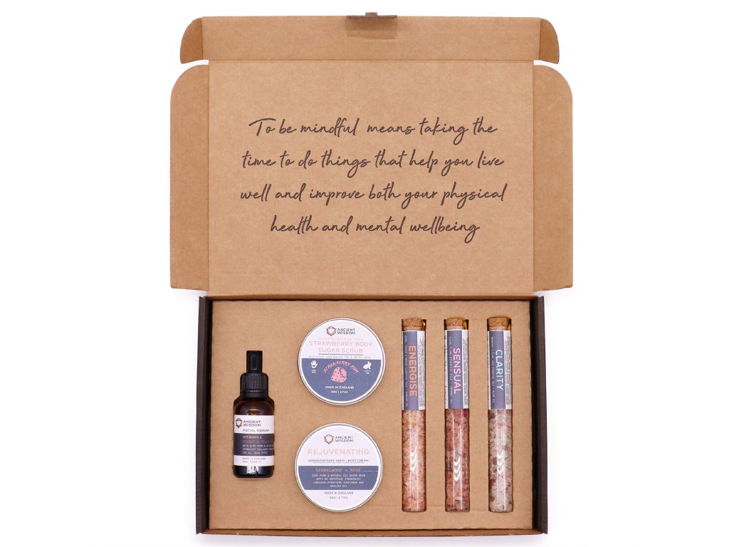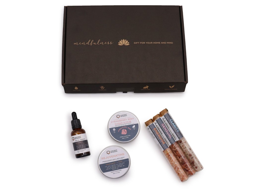 Sada (Set) Starostlivosti o Pokožku - Povzbudzujúca je luxusný darčekový balík určený na kompletnú starostlivosť o telo a zmysly. Obsahuje peeling, krém, soľ do kúpeľa a sérum s vitamínom C.