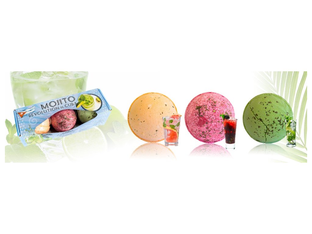 Vychutnajte si šumivý kúpeľ plný vône Vášho obľúbeného koktailu. Sada obsahuje 3 bomby: Klasické mojito, Černicové mojito, Mojito ružový grapefruit.