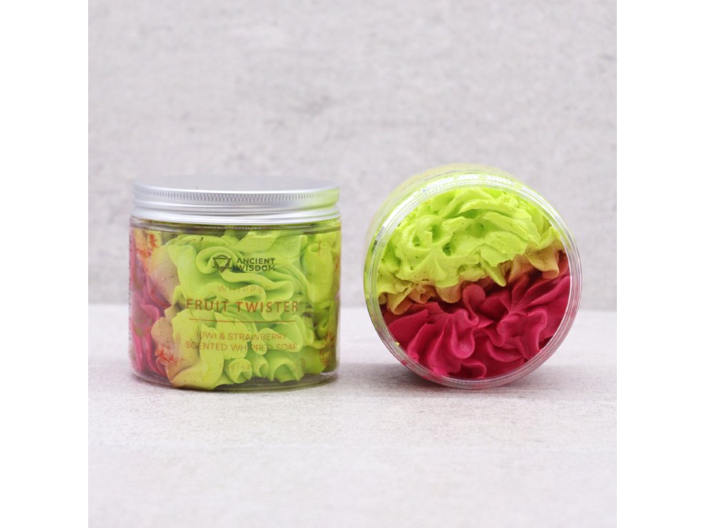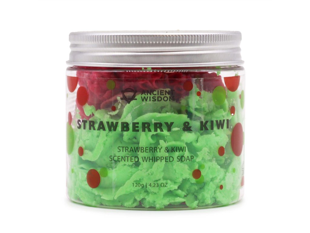 Luxusné šľahané mydlo Jahoda a Kiwi 120 g - hutná, nadýchaná pena, jemné čistenie a starostlivosť pre citlivú pokožku.