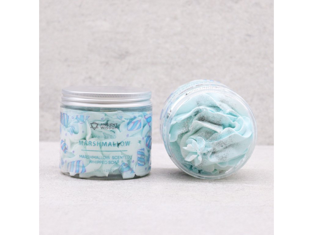 Vo víre cukríkovej oblohy sa rodí malý zázrak, šľahané mydlo Marshmallow je ako nežná pena, ktorá sa po dotyku s vodou rozpúšťa a premieňa na krehký oblak hodvábnej čistoty.