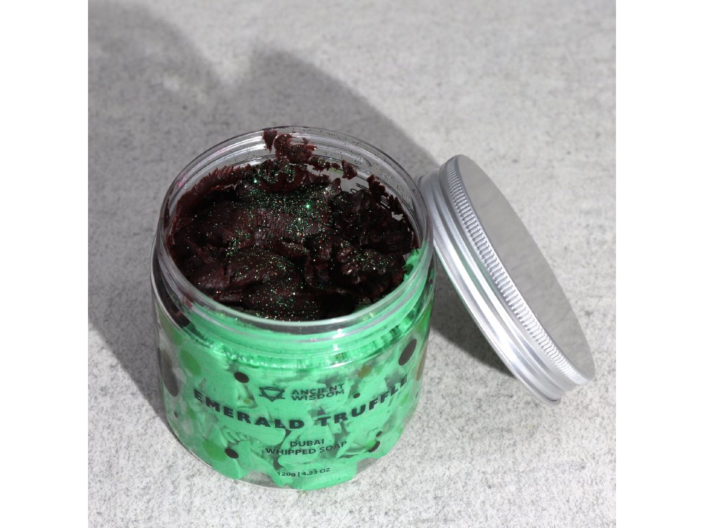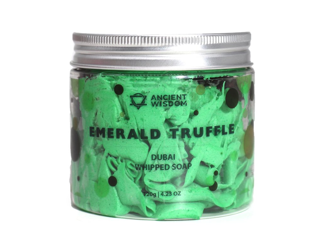 Vo vôni tmavého smaragdu, ktorý sa leskne skrytý v hmle noci, prichádza šľahané mydlo, ktorého krémová pena je ako tajomný tanec svetla a tieňa.