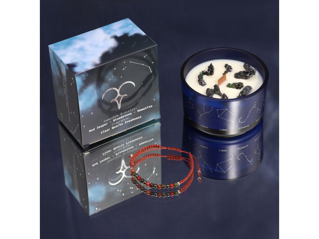 Zapáľte odvážnu a nebojácnu energiu Barana s touto kryštáľovou sviečkou a náramkom z drahokamov.