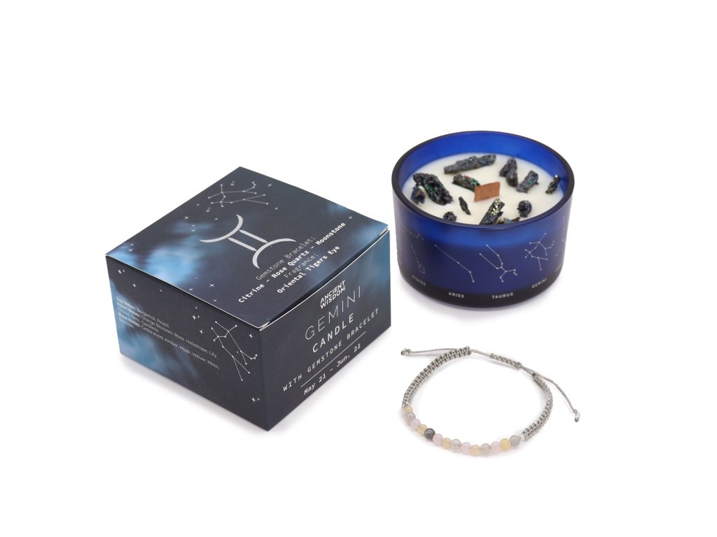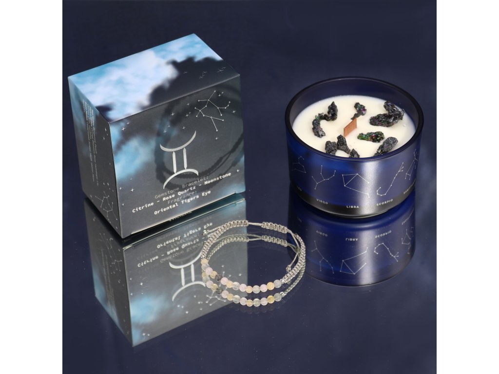 Táto sviečka a náramok spolu tvoria dokonalý darček alebo osobný talizman, ktorý pomáha Blížencom prijať ich jedinečnú dvojitú povahu a žiť v súlade so svojou energiou.