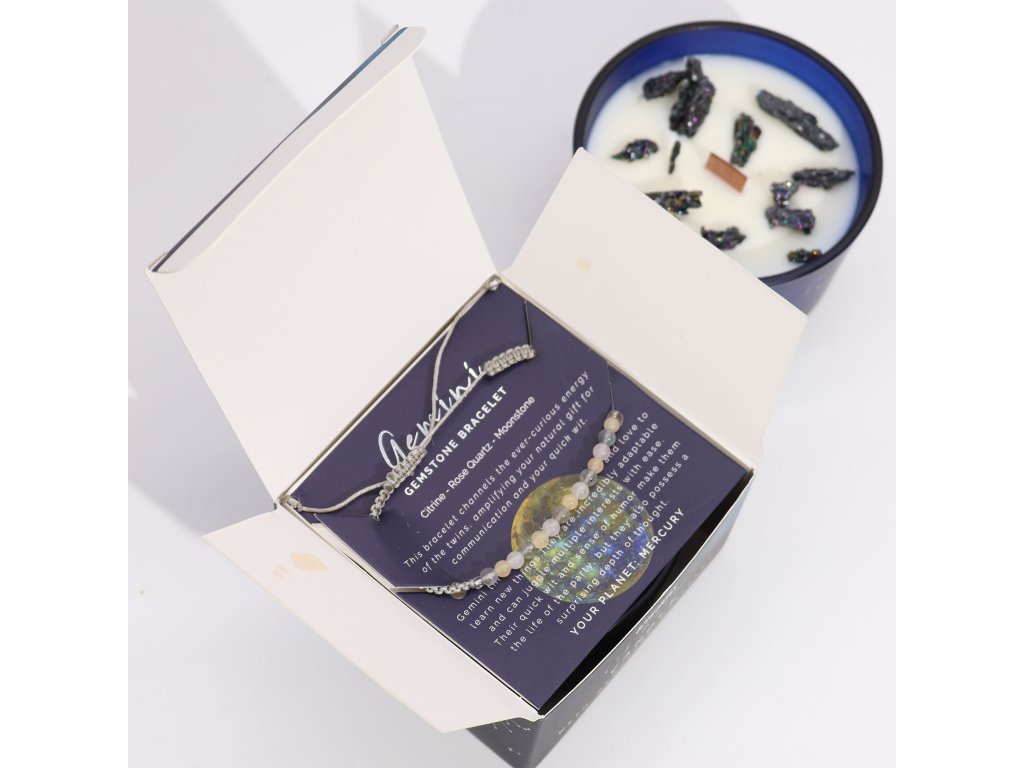 Sviečka s kryštáľom a náramkom z drahokamov - Blíženci