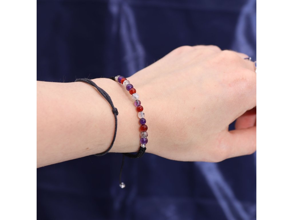 Súčasťou sady je aj náramok z ametystu, karneolu a machového achátu, starostlivo vybraných tak, aby ladili s vyživujúcou a precíznou energiou Panny:
