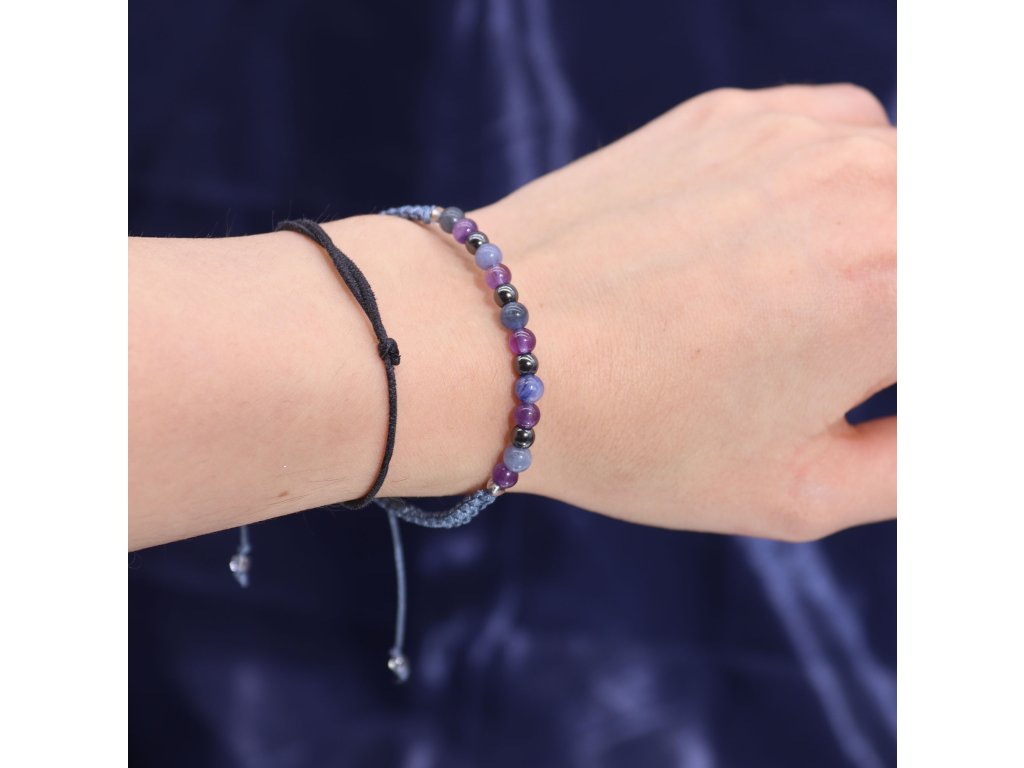 Súčasťou sady je aj náramok z ametystu, sodalitu a čierneho obsidiánu, starostlivo vybraných pre zosilnenie zvedavej a expanzívnej energie Strelca: