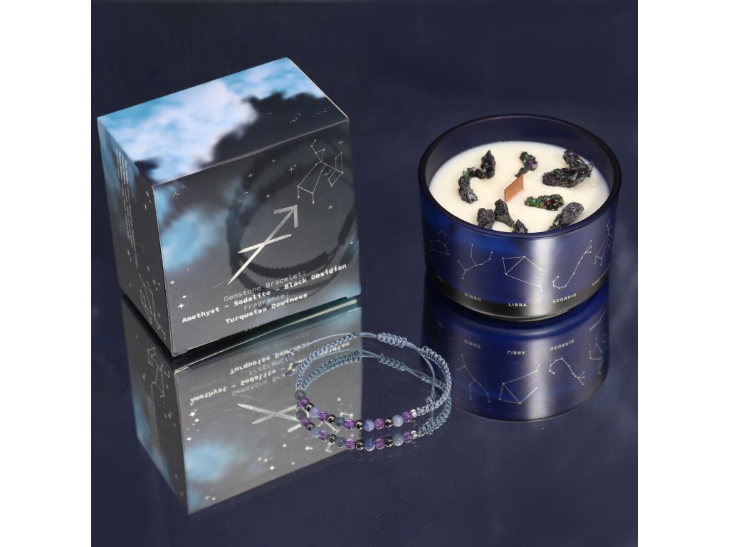 Táto energizujúca a inšpiratívna sada spája aromatickú sviečku s drahokamovým náramkom, vytvorenú tak, aby odrážala optimizmus, slobodného ducha a dobrodružnú povahu znamenia Strelca.